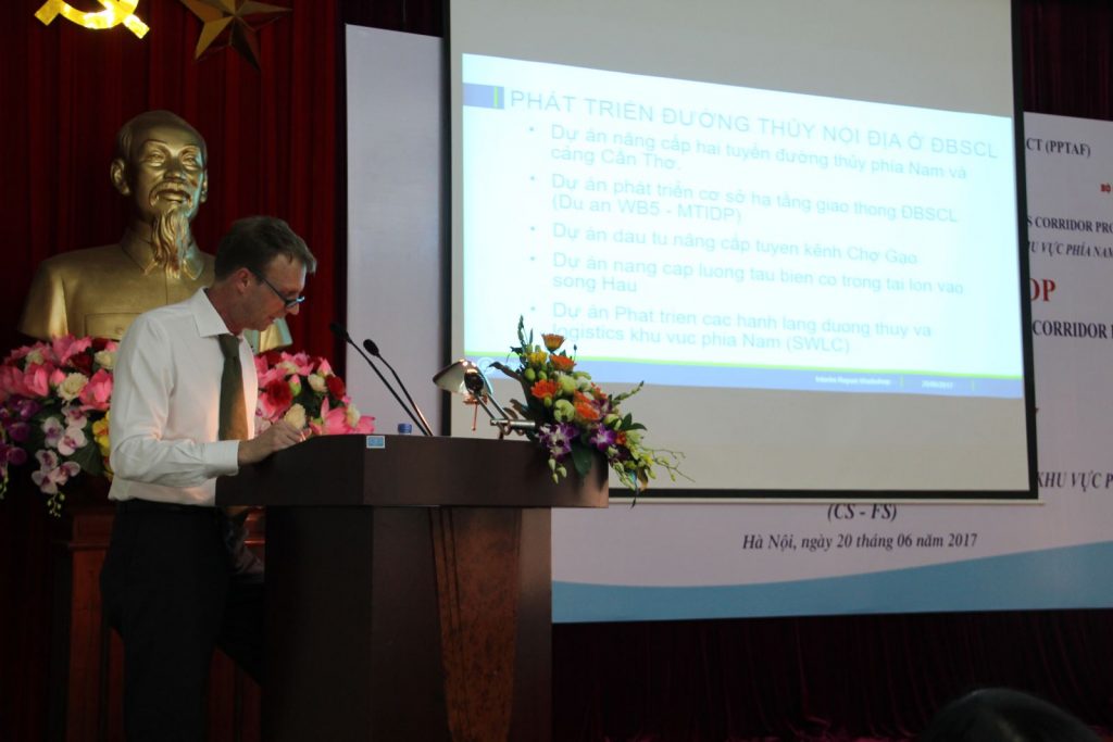 Chiều 20/6, tại trụ sở Bộ GTVT, Thứ trưởng Nguyễn Văn Công đã chủ trì cuộc họp nghe báo cáo giữa kỳ Nghiên cứu Dự án Phát triển các hành lang đường thủy và logistic khu vực phía Nam (SWLC). Tham dự có đại diện các Bộ, Ngành, các địa phương khu vực Đồng bằng sông Cửu Long (ĐBSCL), các Vụ, Cục trực thuộc Bộ GTVT, Ban Quản lý các dự án đường thủy và đơn vị Tư vấn.